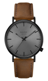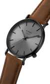 The forged and sandblasted matte Black Out case is a powerful style symbol that adds a standout element to any outfit. The gunmetal grey sunray dial catches the light to clearly define the sharp lines of the hands and the protective scratch resistant plating ensures that our Black Out stays black. Locking this case into the Vintage Brown leather strap adds a rustic heritage feel to the watch and makes the Black Out Vintage Brown a versatile combination for any designer, architect, or outdoorsman. If you don’t want to compromise aesthetics and style for comfort and durability, then the Black Out Vintage Brown is your go-to watch!